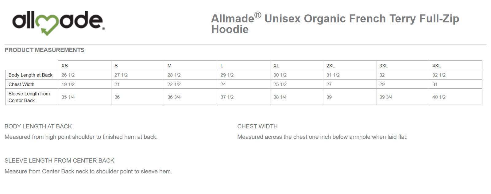 Allmade Unisex Organic French Terry Full-Zip Hoodie